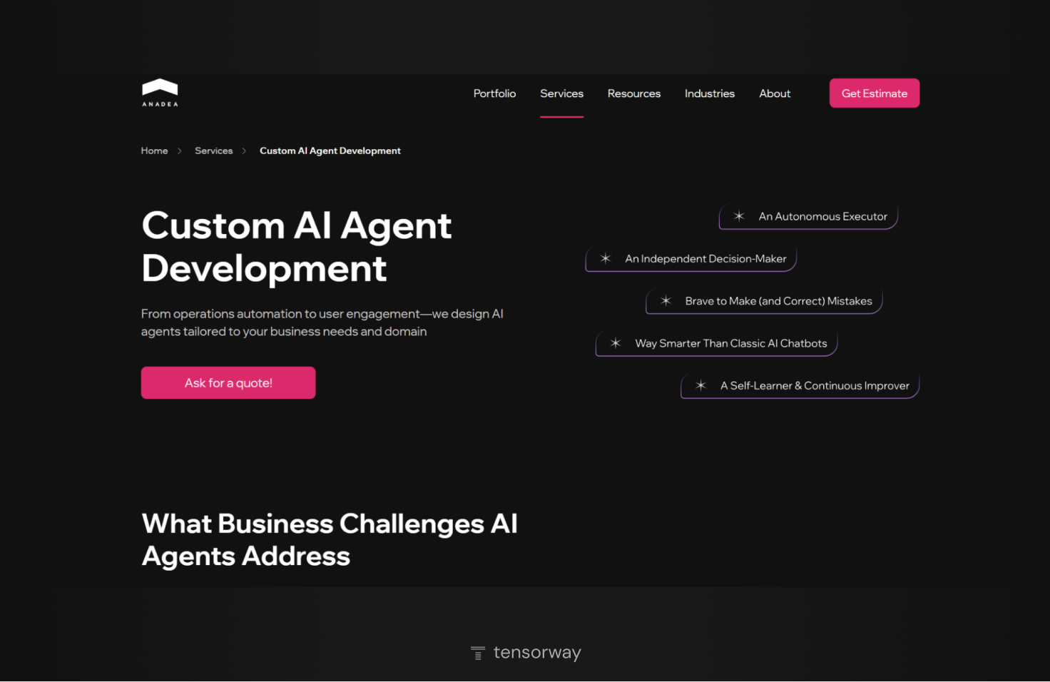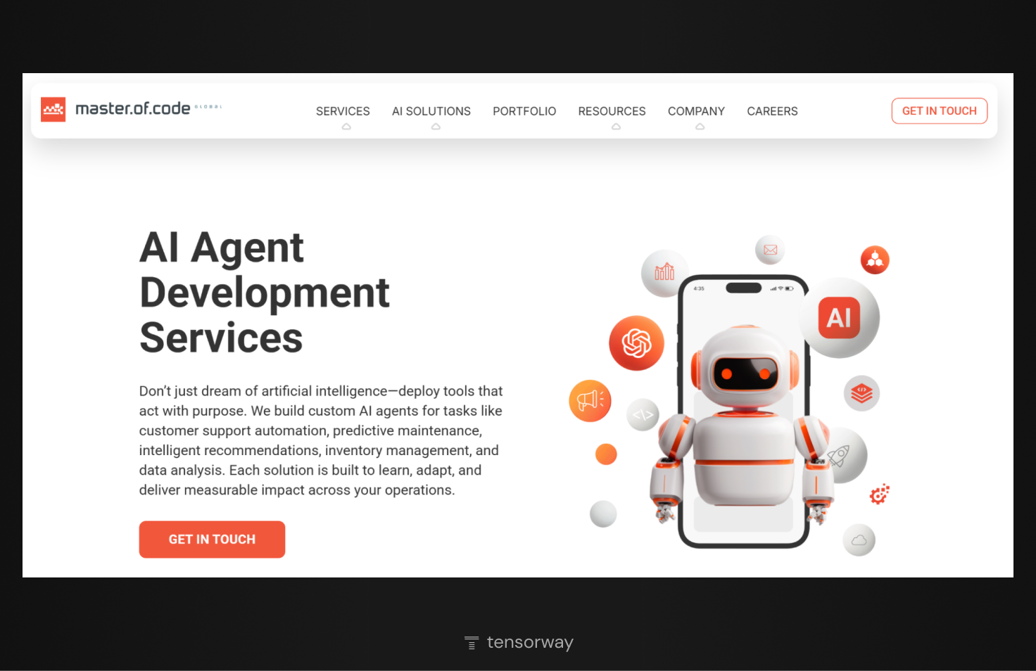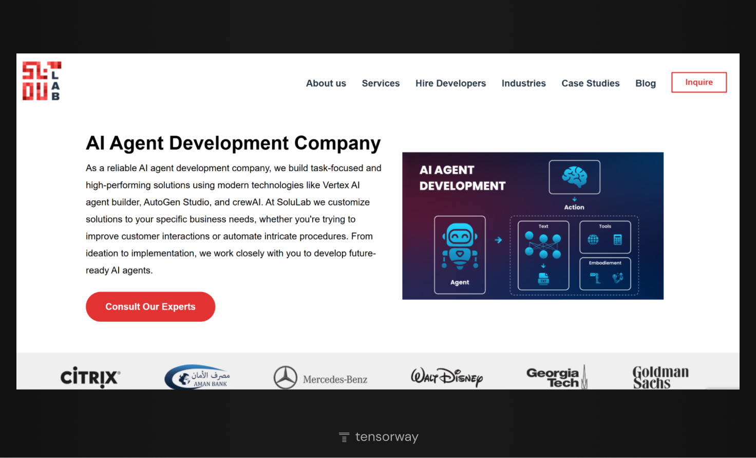Tensorway is a custom AI agent development company that focuses on building advanced, production-ready autonomous solutions for businesses. The firm develops autonomous AI agents capable of reasoning, planning, and executing complex workflows. Such solutions are designed for various domains, including, but not limited to, finance, healthcare, e-commerce, manufacturing, edtech, energy, and customer operations.